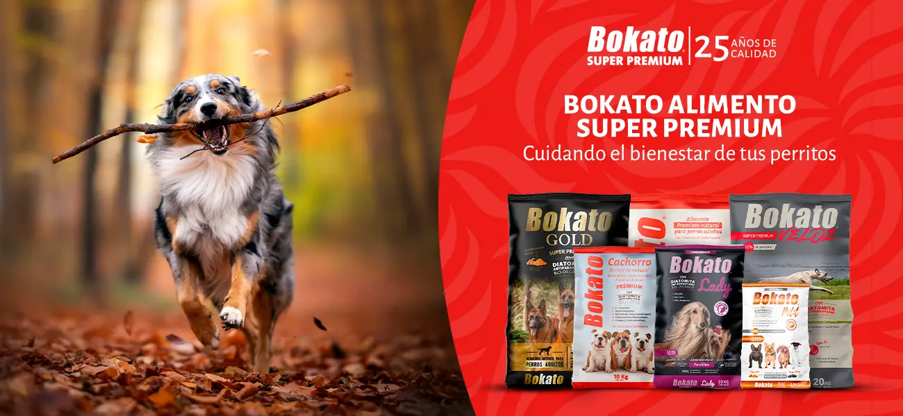 En Bokato llevamos 25 años creando el mejor alimento para perros. Contamos con 6 variedades: Cachorro, Tradición, Gold, Veloz, Petit y Lady (para perritas esterilizadas o en edad fértil). Todos están hechos con ingredientes naturales, sin soya ni trigo, con carne de ave y cerdo como primer ingrediente, y un alto aporte vitamínico.