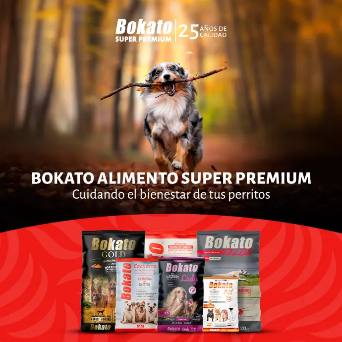 En Bokato llevamos 25 años creando el mejor alimento para perros. Contamos con 6 variedades: Cachorro, Tradición, Gold, Veloz, Petit y Lady (para perritas esterilizadas o en edad fértil). Todos están hechos con ingredientes naturales, sin soya ni trigo, con carne de ave y cerdo como primer ingrediente, y un alto aporte vitamínico.